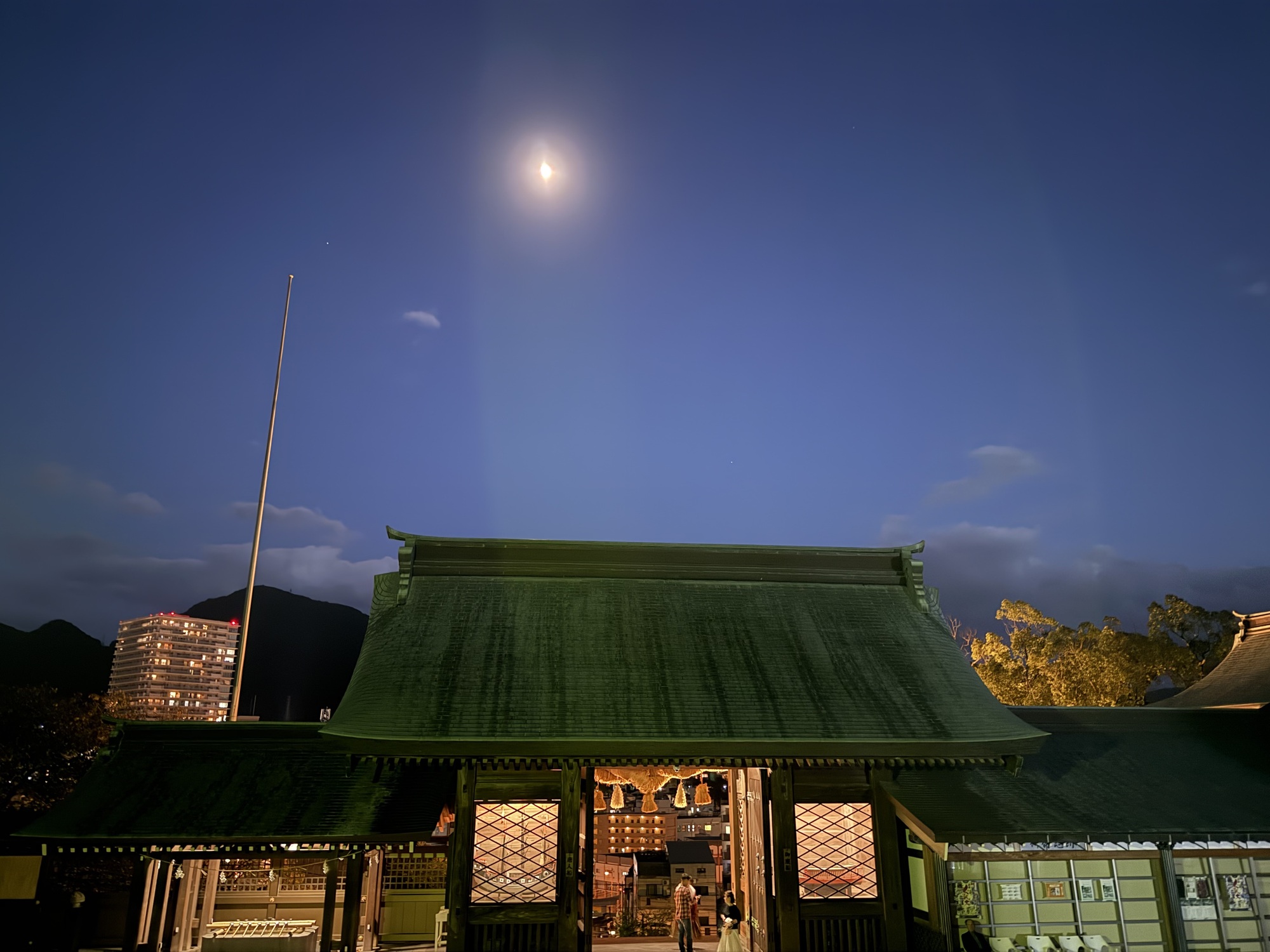 夜の諏訪神社のライティングがとても綺麗で秋の夜長を感じました🌕