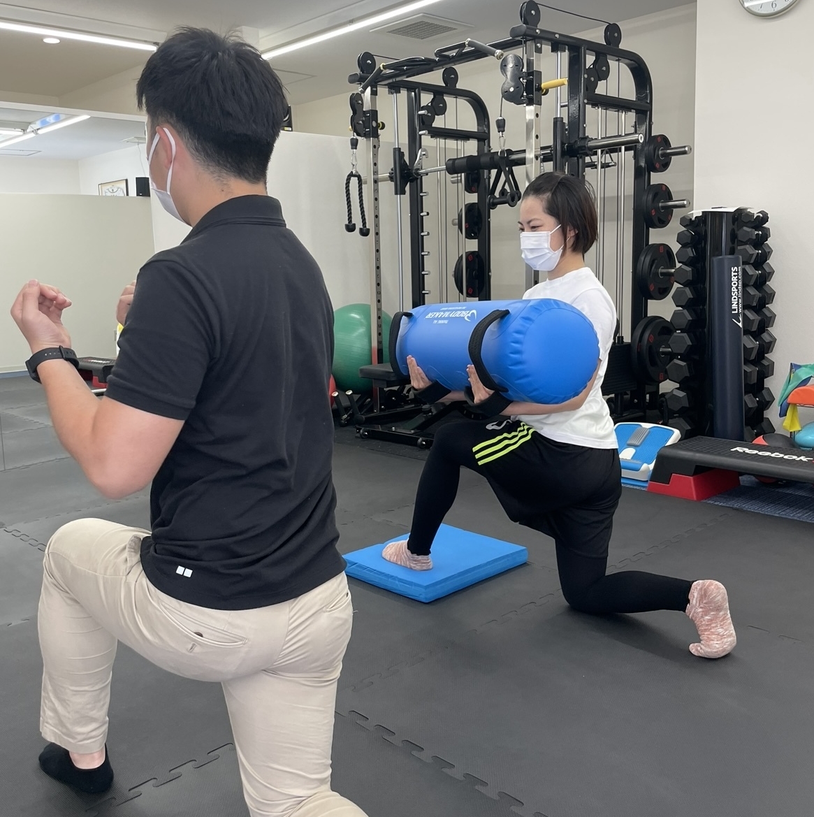 当院では、患者様の状態に合わせて競技復帰までのトレーニングや再発予防、関節可動域改善・パフォーマンスアップのトレーニングを行っております。