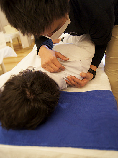 当院では、野球・テニス・バドミントン・アメフト・バレー・サッカー・柔道・ラグビーをされる方に、肩の症状が多く見られます。通常の治療では、電気治療やマッサージのみの場合もありますが、原因が他の部位にある恐れもあるので、当院では、肩だけでなく全身の状態を検査し、最新の微弱電流機器と手技・ストレッチや骨盤矯正、障害部位のトレーニングを通して根本からの治療・機能改善を行います。